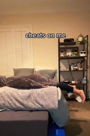 Her video was then cut to Colleen on the bed with the overlay text that read: “Cheats on me.”